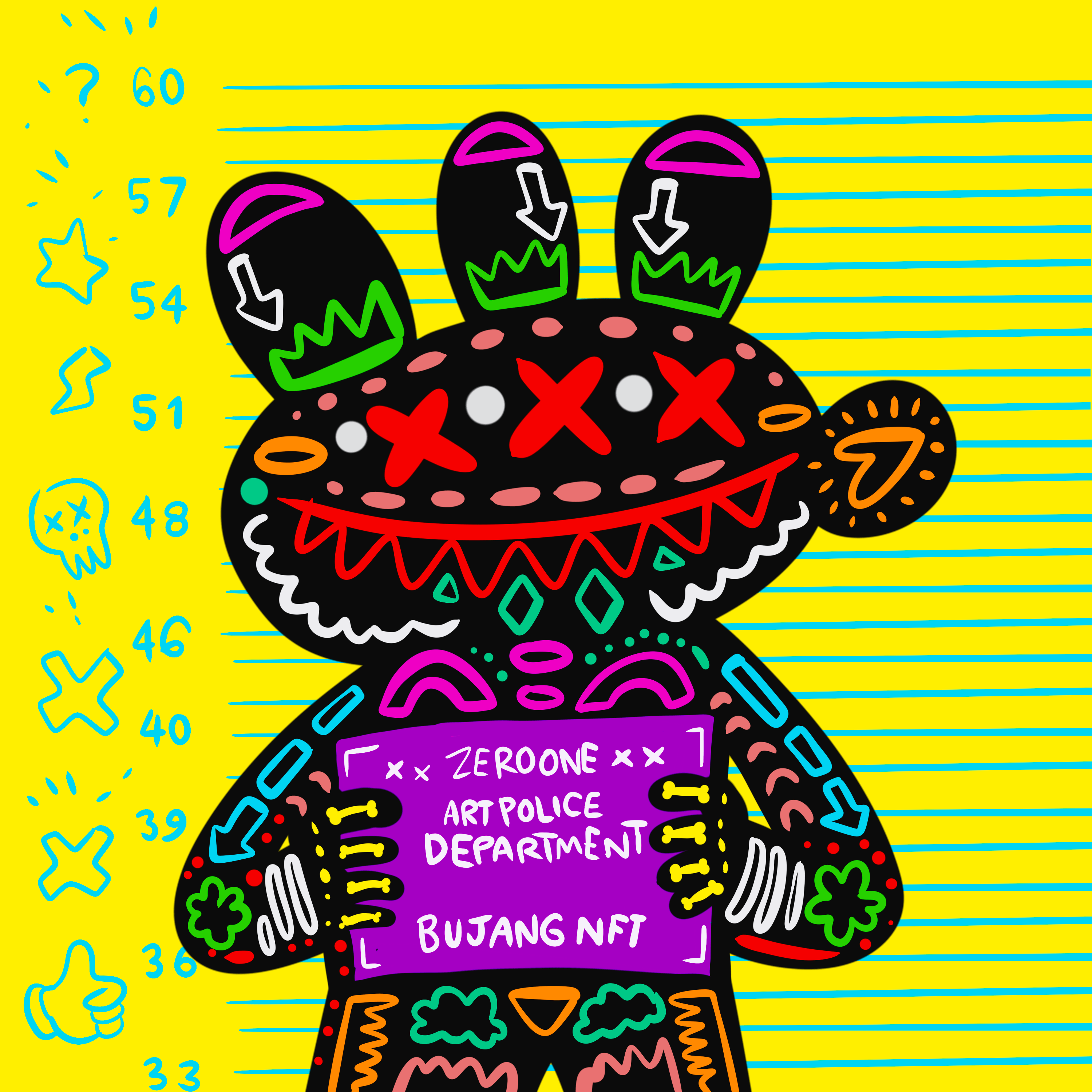 Fun color line on black blank character. Show scene of arrested character. Crazy color. Special one.