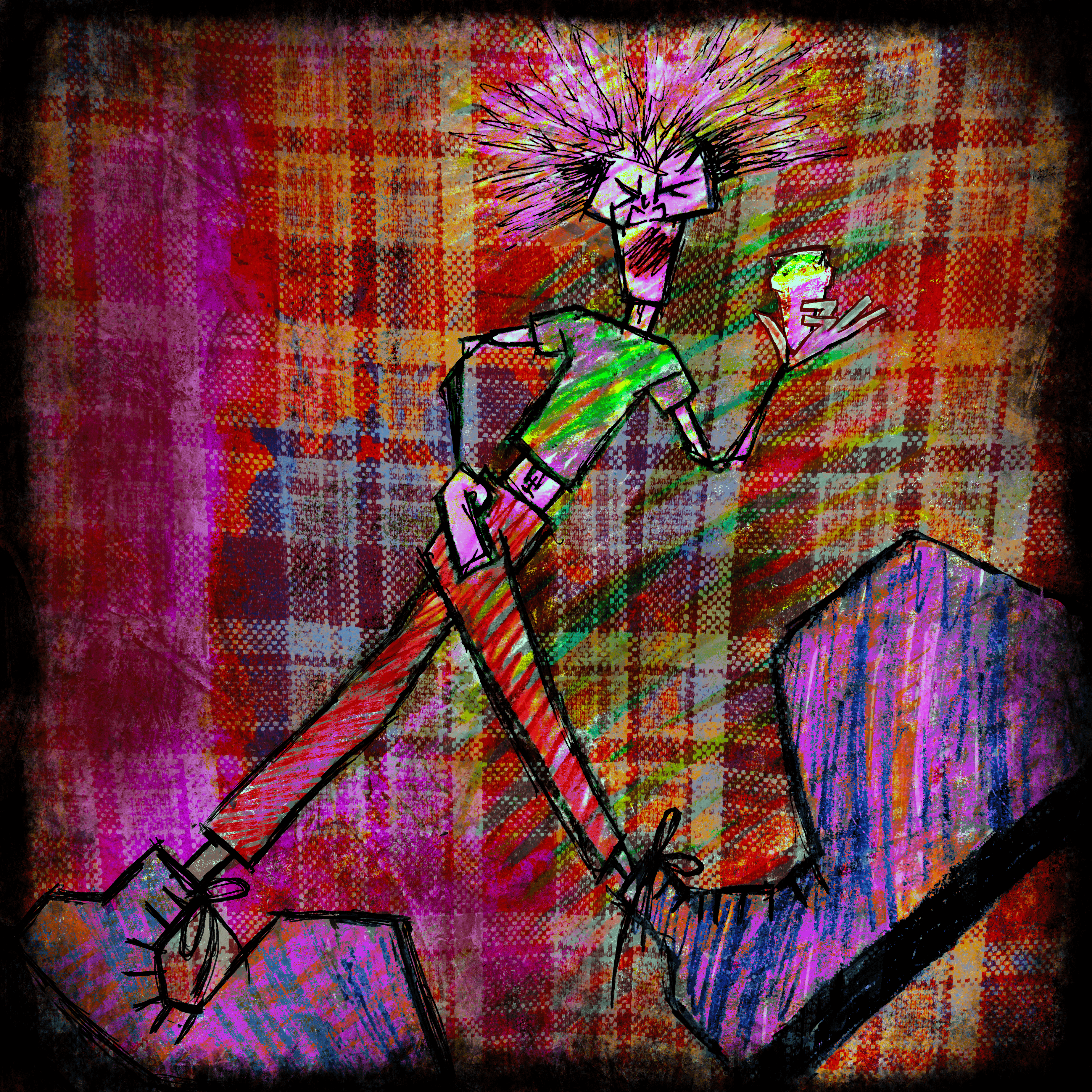You can't dance without a pint of Tartan Special in your hand. You'll never-ever ever spill a drop. This original Biro sketch was created in 1980 in Angie's sketchbook. Brought to life in 2022 with some digital inking. Minted in 2023. It only took 43 years to make.