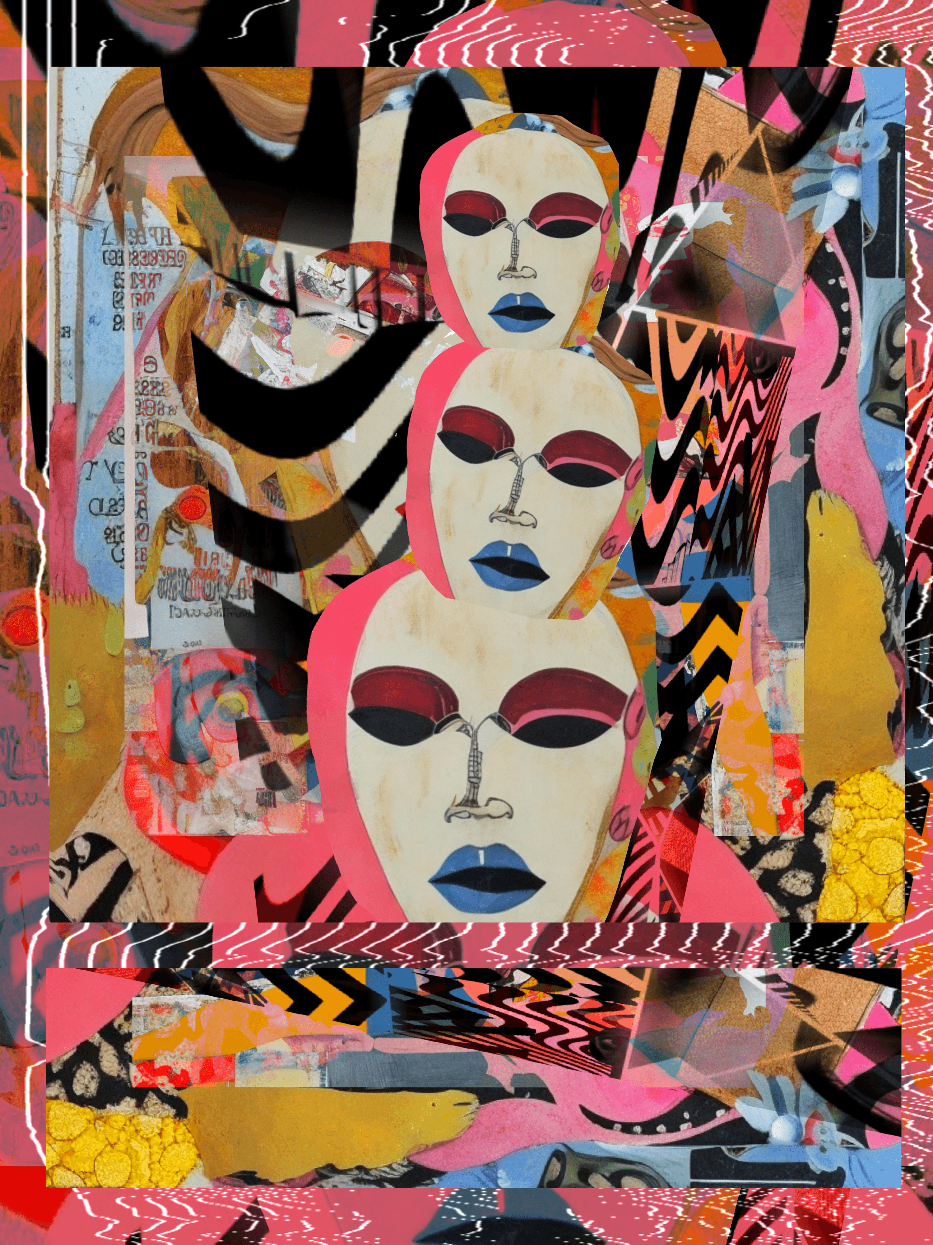 mixed media digital collage with AI and glitched elements